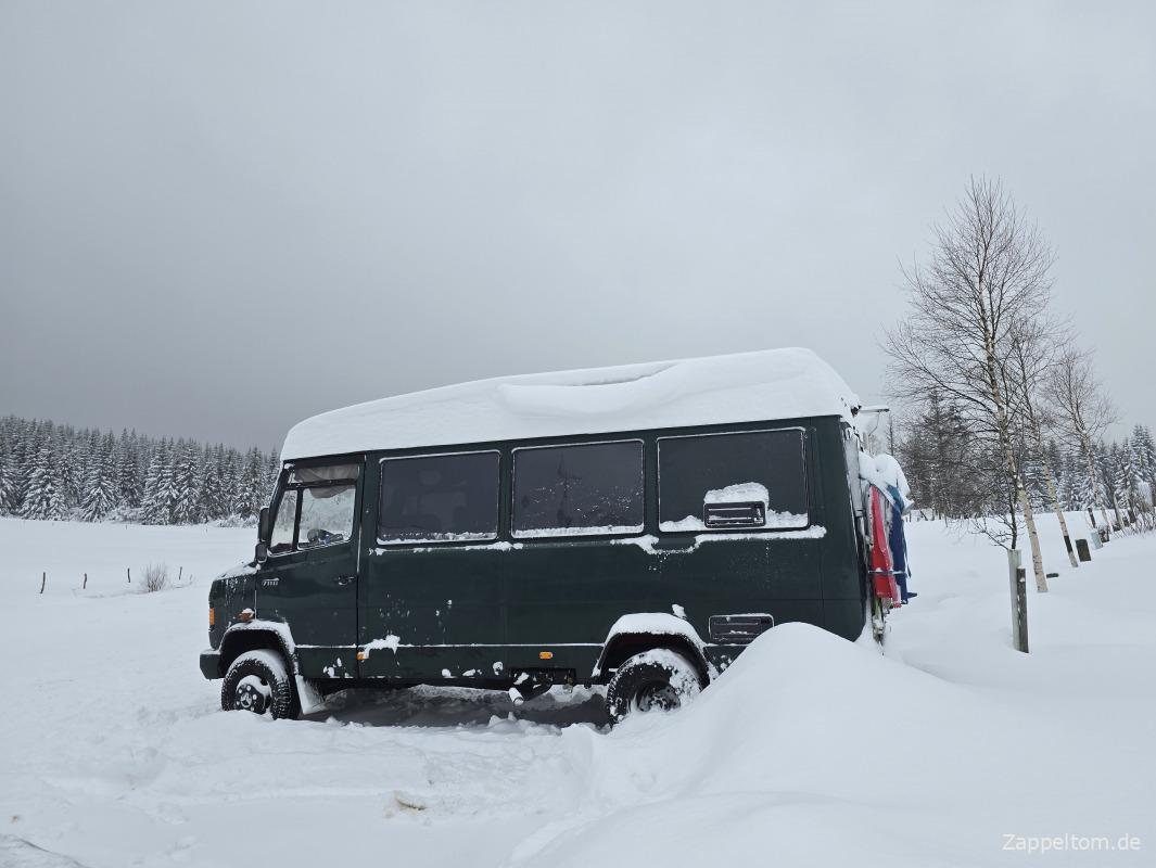 Ich liebe den Schnee. Und ich tue alles dafür, dass ich mit dem Wohnmobil auch im Winter campen kann. Allerdings ist das bei einem Fensterbus gar nicht so einfach. Bin aber mittlerweile mit der Dämmung und den selbstgebauten Isolierglasscheiben sowie der thermischen Trennung vom Fahrerhaus ganz zufrieden. Der Fußboden ist noch ein bisschen kalt, aber sonst kann man es im Winter im Wohnmobil aushalten.
