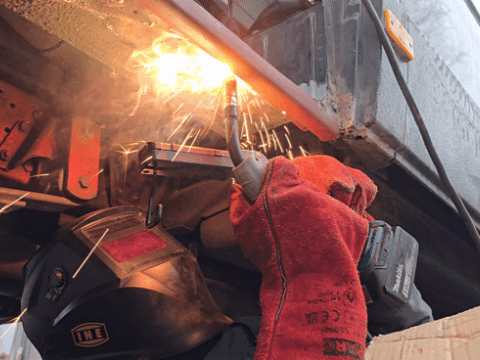 Schweißvorbereitungen für die Reparatur der Trittstufe