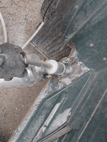 Und jetzt ist auch der richtige Zeitpunkt für meine Sandstrahlpistole, um auch wirklich den letzten Rost runterzuschrappeln.
