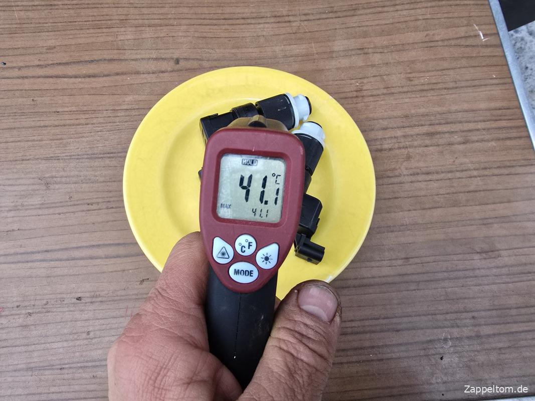 Erst mit der passenden Einbautemperatur kann ich die Stellmotoren der neuen elektrischen Leuchtweitenregelung auf die Kugel vom Reflektor drücken.