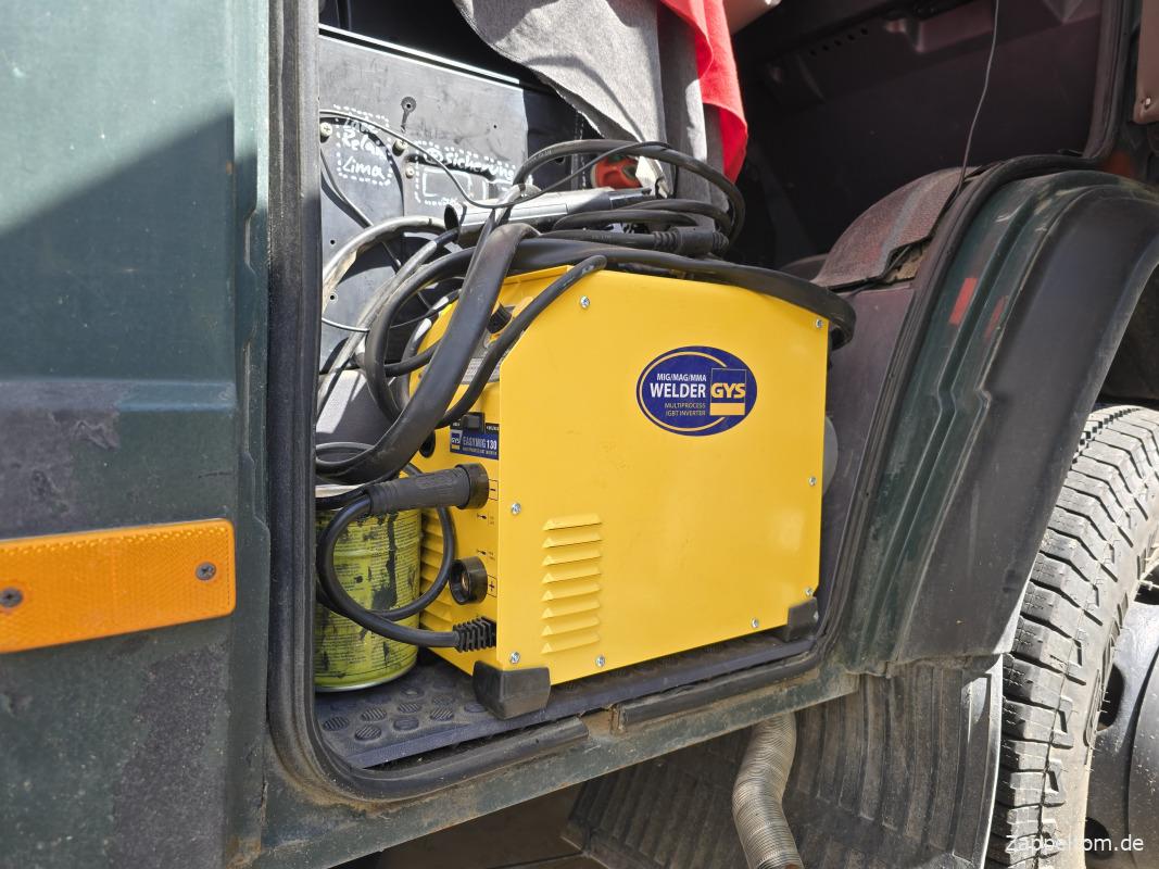 Früher stand das nie zur Debatte, aber warum soll ich zusätzlich zur normalen Reiseausrüstung für Tunesien jetzt nicht auch ein Schweißgerät mitnehmen? Und einen Quadratmeter Blech, die Blechschere, die Kantbank, die Flex sowieso und noch dies oder das. Das extrem handliche GYS EasyMIG 130* passt nebst einer Dose Brantho Korrux jedenfalls ideal in den Beifahrereinstieg.